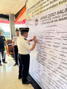 Warungkiara – ) Kepala Lembaga Pemasyarakatan (Kalapas) Kelas IIA Warungkiara, Kurnia Panji Pamekas, bersama jajaran pejabat struktural dan seluruh petugas, melaksanakan ikrar Zero Halinar (Handphone, Pungli, dan Narkoba) sebagai bentuk komitmen bersama dalam menciptakan lingkungan pemasyarakatan yang bersih dan berintegritas.